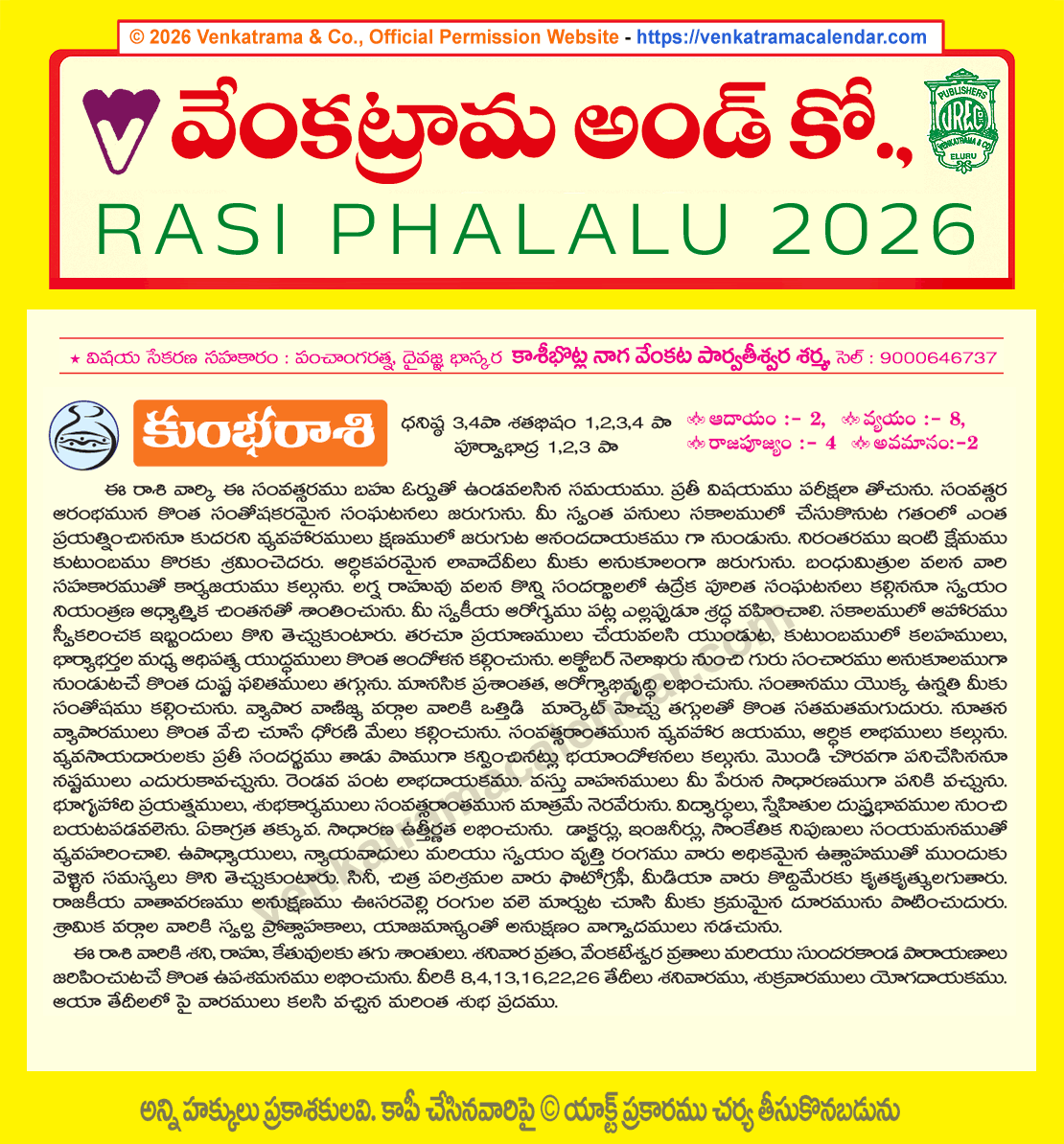 Venkatrama & Co 2026 Telugu Rasi Phalalu